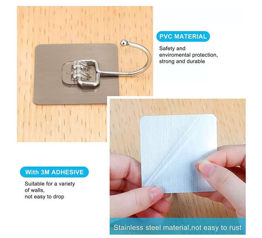 10 Self Adhesive Strong Sticky Hooks Heavy Duty Wall Seamless Stainless Steel UK