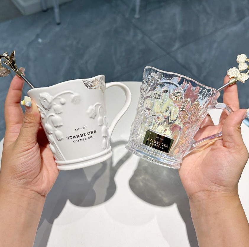 2023 Starbucks Mug Elegant Lily of the Valley Colorful Relief Glass Cup W/ Stick