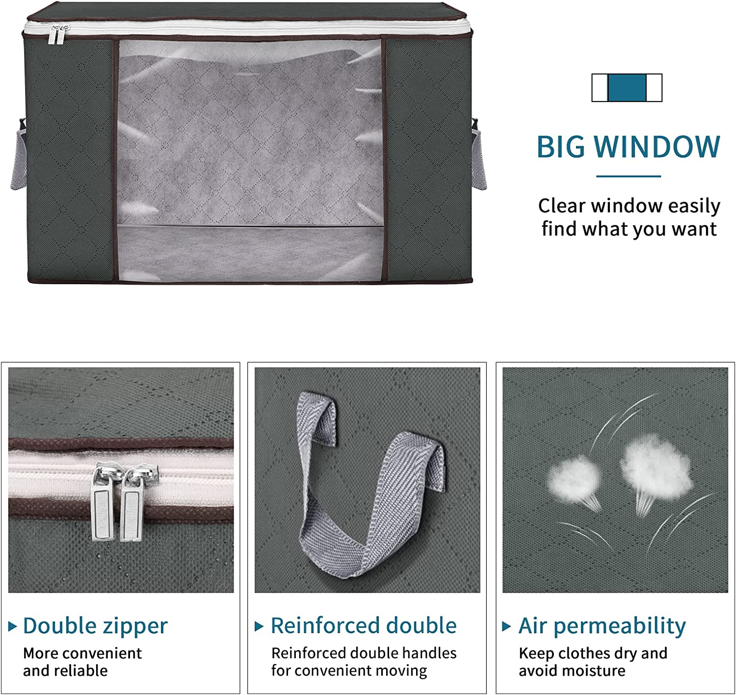 90L Large Storage Bags 6 Pack Clothes Storage Bins Foldable Closet Organizer Sto
