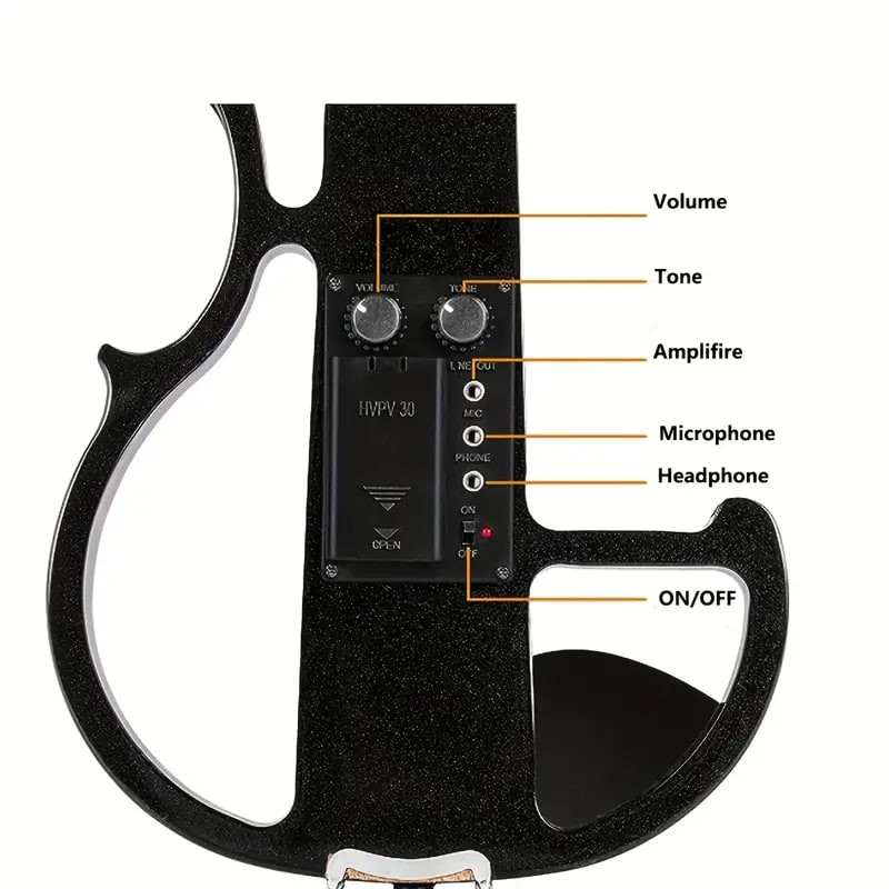 electric violin full size 4 4 black silent electric violin solid wood metallic electric fiddle beginner kit for adults teens details 4electric violin full size 4 4 black silent electric violin solid wood metallic electric fiddle beginner kit for adults teens details 4