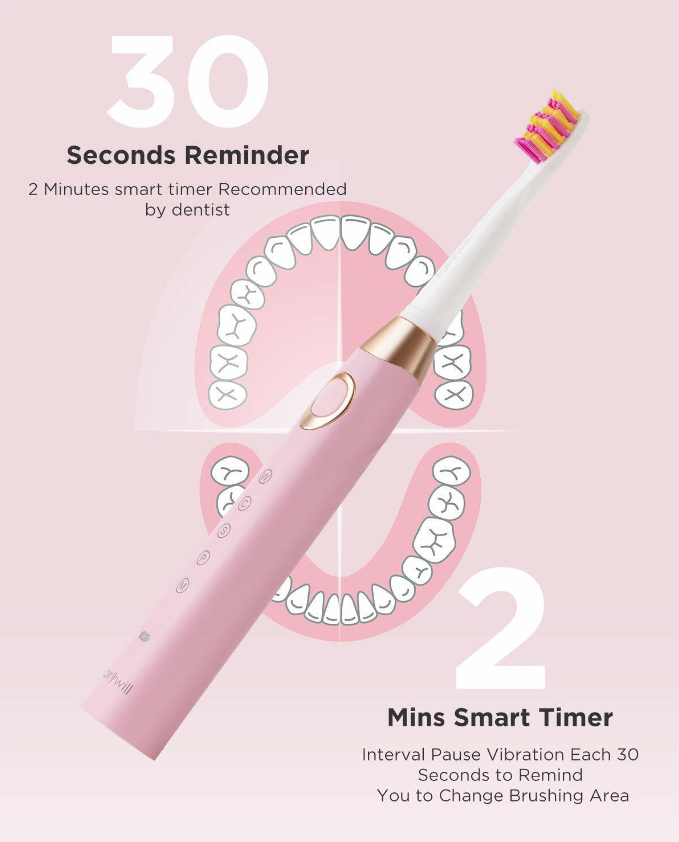 • ✅ 2 Mins Smart TIMER & A 30Days Long Lasting Battery Life - Built-in Timer with 2 mins auto shut-off and interval pause of reminding to change brushing areas every 30s helps to give you a total mouth clean, With this brush you will improve your oral health easily. Designed with USB fast charging system. Get a full days use from only one 5 minute charge. Get over 30 days use from only one full charge of 4 hours.