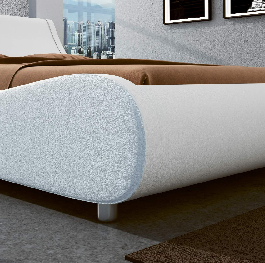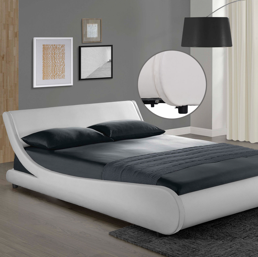 【Bedroom Refresh】 Wave-like silhouette of Our low profile bed is one of a kind addition to any contemporary bedroom. This upholstered platform bed is fully wrapped in soft PU leather for ultimate comfort and looks, and features a slatted base.
