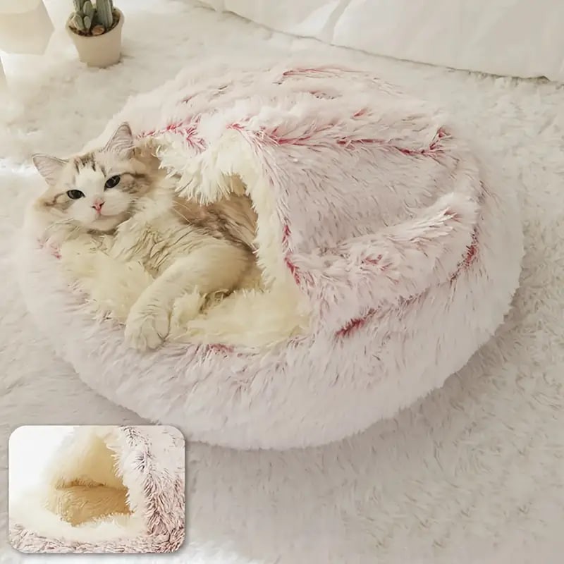 Soft and Cozy: Plush Round Hooded Pet Bed is made of highquality materials that provide warmth and comfort to your furry friends. Hooded Design: The hooded design of this pet bed provides a sense of security and privacy to your pets, making them feel safe and relaxed.